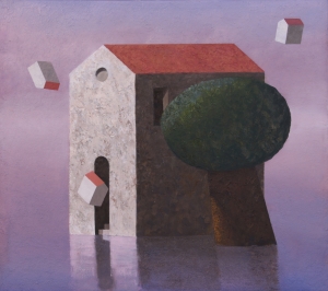 Che tipo di pittura realizza Matthias Brandes? Una pittura di visione, sospesa tra realtà e simbolo, ispirata alla metafisica e all’architettura mentale.